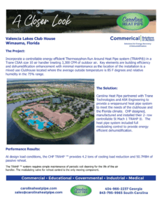 Visit our case study here, Carolina Heat Pipe Delivers Energy‑Efficient Humidity Control at Valencia Lakes Club House